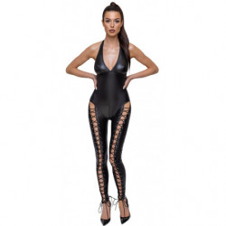 Brillant mat stylé qui s'adapte parfaitement à la peau ! Combinaison entièrement élastique de Cottelli PARTY dans un look noir mat. Coupe près de la peau avec une longue jambe étroite pourvue d'un laçage devant et derrière ainsi que de haut en bas. À l'entrejambe, fermeture éclair pratique/érotique à double sens. Dos nu - tour de cou avec fermeture à clip. 90% polyester, 10% élasthanne.