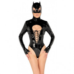 Plutôt Cat ou Batwoman ? Body extravagant de Black Level avec masque de tête cousu - le tout dans un noir brillant et laqué. Coupe près du corps avec des découpes extra hautes pour les jambes. Découpe généreuse à l'avant avec des œillets argentés pour un laçage variable jusqu'au nombril. Manches extra longues avec pouce. Masque de tête de style Cat/Batwoman avec petites oreilles et ouvertures pour les yeux, le bas du visage reste libre. Dans le dos, longue fermeture éclair à double sens de la tête au coccyx. Fermeture à bouton-pression à l'entrejambe. 100% polyester, revêtement en polyuréthane.