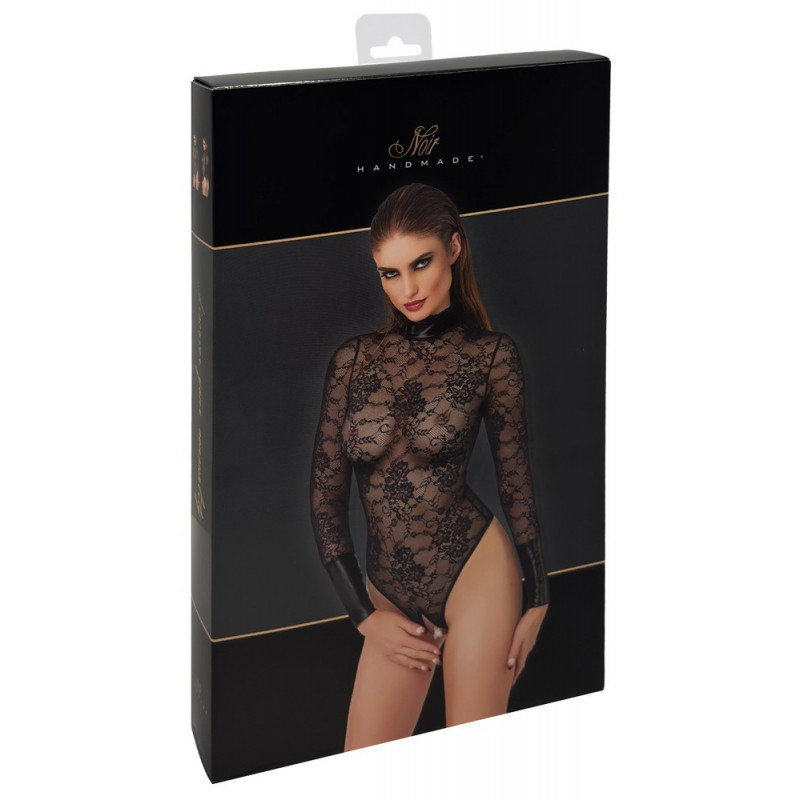 Style dentelle et confort ! Stringbody ouvert exclusif de Noir en fine dentelle florale noire. Avec des détails Powerwetlook stylés comme collier sur le col montant à volants en dentelle et comme larges manchettes sur les manches longues. Doux et élastique pour un grand confort de port. Les découpes extra hautes pour les jambes mettent parfaitement en valeur les fesses et les jambes. Ouverture séduisante à l'entrejambe. Le col montant se boutonne dans la nuque. 85% polyamide, 15% élasthanne. Pour Noir, il existe un tableau des tailles séparé.