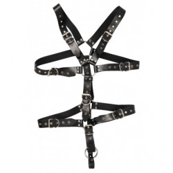 Pour les amoureux du cuir ! Harnais composé de sangles en cuir noir clouté et d'anneaux de connexion en acier. Plusieurs fermetures ajustables avec boucle pour un ajustement individuel. Un anneau pour le pénis ou les testicules (Ø 5 cm) permet en outre de contrôler HIM. Une qualité supérieure et durable ! Cuir (cuir véritable, buffle) tanné sans chrome, métal. Contient des parties non textiles d'origine animale.