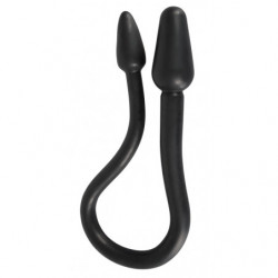 Double godemiché pour plus de plaisir seul ou à deux ! Double godemiché extrêmement flexible de Rebel avec un plug à chaque extrémité. Pour les jeux en solo, insérer le gode par voie vaginale et anale, pour les jeux à deux, chacun s'offre un des plugs. Surface soyeuse et glissante. Noir. Longueur totale 76,5 cm, Ø 2-5,1 cm. TPE.