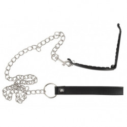Pour des jeux de direction excitants ! Le Pussy Clamp with a leash de Bad Kitty combine une pince à labia raffinée avec une laisse en chaîne. La pince à la courbure anatomique idéale s'ouvre grâce à un ressort à branches et se referme simplement autour des lèvres vulvaires après la mise en place. La longue laisse en chaîne avec dragonne en similicuir peut être retirée de l'anneau de la pince grâce à un mousqueton. Pince : 11 cm de long, 1,7 cm de large. Laisse : longueur totale 85,5 cm, dragonne 16,4 cm. ABS, métal, PU.