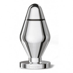 Avec des impulsions électriques pétillantes par la porte de derrière ! Butt Plug Little John de Mystim pour l'appareil de stimulation électrique Tension Lover ou Pure Vibes de Mystim. Avec son diamètre de 5 cm, le plug E-Stim est un analtoy idéal. Le métal lisse se rétrécit, ce qui permet d'introduire facilement le Butt Plug. Après quelques centimètres déjà, l'isolation entre les deux pôles a lieu et la stimulation électrique se fait sentir très tôt. On peut soit profiter de ce plaisir pétillant et voluptueux pendant des heures, soit varier et intensifier la stimulation, de manière à être rapidement poussé vers des points culminants sensationnels. Le plug en métal peut être réchauffé sur le chauffage ou refroidi au réfrigérateur avant utilisation. Longueur totale : 9 cm, Ø 4 cm, poids : 180 g. Aluminium médical. Accessoires - Livré sans appareil de stimulation électrique.