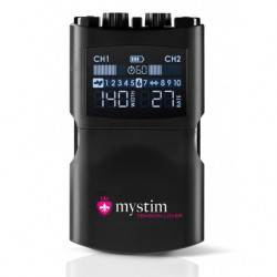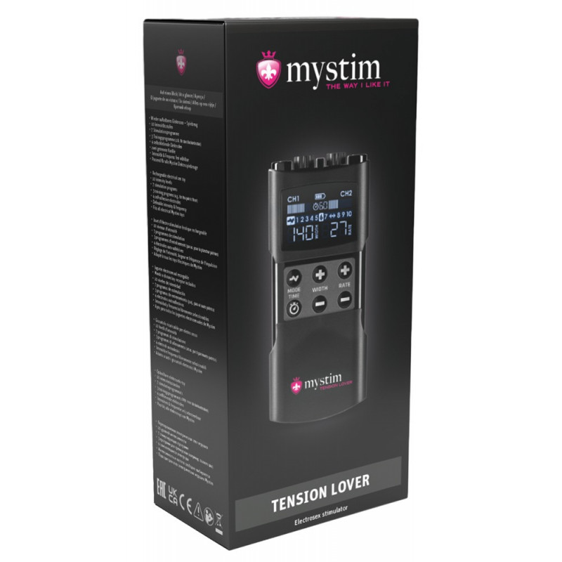 E-Stim Powerbox ! Le retour d'un classique : l'appareil de stimulation électrique Tension Lover 2 de Mystim. Il offre tout le répertoire de l'e-stimulation, des doux picotements et des chatouilles délicates aux pulsations rythmées et aux poussées sensuelles. L'appareil de stimulation électrique rechargeable dispose de 2 canaux réglables séparément, ce qui permet de connecter et de contrôler 2 jouets simultanément. L'intensité, la largeur et la fréquence des impulsions peuvent être contrôlées individuellement pour chaque canal. De plus, 7 programmes de stimulation (de doux à dur) et 3 programmes d'entraînement (par exemple pour le plancher pelvien) offrent automatiquement beaucoup de plaisir et de variété. De plus, la minuterie (par pas de 5 minutes) offre 5 à 90 minutes ou un fonctionnement continu. Tout peut être lu et contrôlé facilement sur le très grand écran éclairé. Le verrouillage pratique des touches empêche toute modification involontaire des réglages préenregistrés. Chaque accessoire Mystim peut être connecté via la fiche ronde Mystim et la fiche de 2 mm. Contenu de la livraison : Tension Lover E-Stim Powerbox 2 câbles d'électrodes 4 électrodes autocollantes (flexibles, réutilisables) Guide de démarrage rapide. Rechargeable - câble de chargement USB-C inclus. Appareil de stimulation E-Stim : 12,5 cm x 7 cm x 2,9 cm ; poids 115 g. Impulsion rectangulaire biphasique asymétrique Durée d'impulsion 50-260 µs Plage de fréquence 1-160 Hz Intensité 0-100 mA