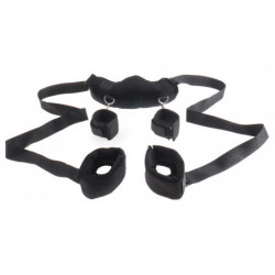 Pour le coin du bondage à chaud ! Le kit de bondage au lit offre tout le nécessaire pour attacher tout le corps et transforme le lit en un terrain de jeu de bondage professionnel. Que ce soit à la maison ou lors d'un vilain week-end. Les poignets de lit s'adaptent parfaitement sous le matelas, sans qu'il soit nécessaire d'utiliser des tiges ou des sommiers. Le bandeau donne une autre touche excitante ! Polyamide, métal.