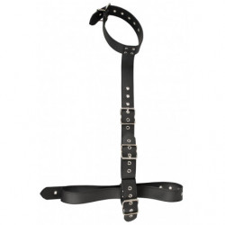 Collier et laisse dans un ensemble ! Le collier en cuir est rembourré et impressionne par ses pointes décoratives et ses anneaux en D. La laisse en sangle est amovible. Végétalien. Circonférence de la servitude réglable de 37 à 47 cm ; laisse de 112 cm de long. Polyuréthane, métal.