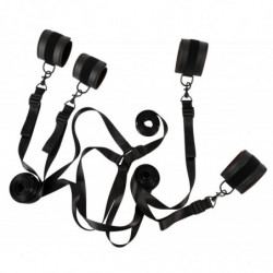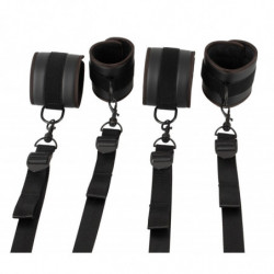 Bondage de Luxe ! Ensemble de bondage de haute qualité avec poignets de cou et de main et sangles de taille. Entièrement réglable grâce à des boucles de fermeture. Un style en cuir noble, mais 100% végétalien. Un vrai moment fort pour les jeux de rôle et les fantasmes de bondage. Circonférence du collier de 28 cm à 42 cm. Circonférence des menottes de 18 cm à 26 cm. Tour de taille de 62 cm à 102 cm. Longueur de la sangle arrière de 17 cm à 32 cm. Polyuréthane.