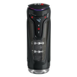 Branlette automatique sex-toy vibrants, massage et chaleur ! Masturbateur Moto-Bator Pro de PDX Elite dans un boîtier discret et maniable. Avec des vibrations puissantes et un massage intensif par à-coups de 3 couronnes de perles, pour gâter le pénis tout autour. En outre, il suffit d'appuyer sur un bouton pour que la fonction de chaleur (2 modes) amène rapidement le masturbateur à la bonne température corporelle et de fonctionnement. La vibration et le massage par à-coups peuvent être commandés séparément dans 5 modes différents par simple pression sur un bouton du panneau de commande éclairé par LED. Dans la gaine ultra-douce, le pénis est en outre massé intensivement par des picots. La gaine au look neutre est amovible pour un nettoyage facile. Rechargeable - câble de chargement USB-C inclus. Longueur totale 26,5 cm, profondeur d'insertion 14 cm, Ø extérieur 8,9 cm, Ø intérieur étroit et extensible. Poids 790 g. ABS, TPE.