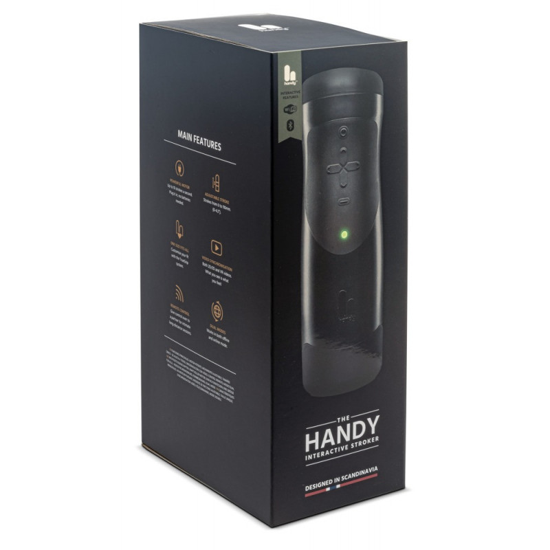 La machine à branlette ultime encore plus performante ! Le masturbateur high-tech The Handy Interactive Stroker a reçu une mise à jour logicielle (firmware 3) et fonctionne désormais de manière encore plus performante et stable. Le matériel a également été amélioré et le manchon à picots est désormais encore plus glissant. L'emballage a été relooké avec style et le Handy 1.1 est désormais accompagné d'un Quick Start Guide (en anglais, allemand, français et espagnol), ce qui permet de démarrer immédiatement. Le nouvel adaptateur coudé à 90° pour le bloc d'alimentation est également très pratique. Le masturbateur sur secteur The Handy 1.1 est livré avec un manchon à picots qui se fixe au masturbateur au moyen de la languette TrueGrip. Le diamètre de la gaine flexible peut être ajusté individuellement grâce à la languette, ce qui garantit des sensations encore plus intenses. De plus, le Handy peut être combiné avec sa propre gaine préférée. La longueur et la vitesse du mouvement de haut en bas peuvent être réglées individuellement et en continu sur l'appareil. Grâce à son moteur puissant, le Handy peut effectuer jusqu'à 10 mouvements par seconde avec une longueur maximale de 11 cm. Grâce au processeur dual core intégré, le portable peut également être connecté à Internet via une connexion WiFi et Bluetooth 4.2 cryptée. Grâce au site web handyfeeling.com, la longueur et la vitesse des mouvements peuvent être contrôlées à distance depuis n'importe où dans le monde. Il est possible d'activer les modes de levage prédéfinis "Tease", "Blowjob" ou "Deepthroat", mais aussi de générer des modes aléatoires en définissant des paramètres. Cela fonctionne également à l'intérieur d'une "stroke range" (zone de levage) souhaitée, par exemple lorsque seul le tiers supérieur du pénis doit être stimulé. En outre, on y trouve du matériel vidéo avec lequel le téléphone portable peut être synchronisé - les mouvements de haut en bas de la gaine sont alors parfaitement adaptés à la vidéo en ligne. Peut également être connecté à des lunettes VR. Longueur totale 23 cm, Ø 7 cm. Poids 582 g. Manchon de 11 cm de long (très extensible), Ø intérieur 2,5 cm (très extensible). ABS, TPE.