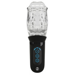 Massage complet et intensif du pénis ! Masturbateur rotatif maniable avec une gaine Super Soft de STROKER, avec ouverture buccale suggérée. La coupelle transparente ultra-souple et flexible entoure le pénis avec ses picots et ses lamelles intérieures douces pour un massage intensif. Un plaisir automatique de première classe - il suffit de s'asseoir et de profiter ! 4 modes de rotation (vers la gauche ou vers la droite) à 3 vitesses assurent un plaisir complet à 360°. Tout est facile à contrôler en appuyant sur un bouton directement sur le jouet. Pour un nettoyage facile, la coupe transparente (Super Soft Sleeve) peut être retirée du masturbateur. Rechargeable - câble de chargement USB inclus. Longueur totale 21,2 cm de long, profondeur d'insertion 8 cm, Ø intérieur 2,3 cm-5 cm. Poids 273 g. ABS, TPE.