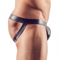 Attire les regards comme par magie ! Jock élastique en noir brillant. Ceinture élastique et bretelles couvertes. 92% polyester, 8% spandex.